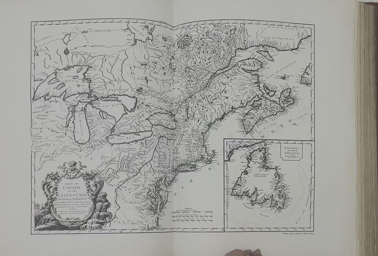 Reproduction, adaptation and colorization of a large map of the North American continent around 1770.
